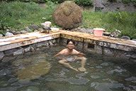 さっそく露天風呂に入る。川のすぐ側に湯船がある。みんなが褒めるだけのことはあるよ。