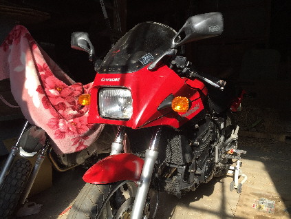 試しに倉庫内を5m程走らせてみる。ちゃんとクラッチが切れる。ブレーキも効いている。そろそろ完成?いや、まだフロントフォークのオイル滲みがあるか…。